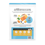 Salmon, Poultry Meal, Tapioca, Tallow, Corn, Rice, Digested Animal Protein, Poultry Fat, Brewer Dried Yeast, Essential Vitamins (Vitamin A, Vitamin D3, Vitamin E, Vitamin C, Nicotinic Acid, Vitamin B1, Vitamin B6, Pantothenic Acid, Vitamin B2, Vitamin K3, Folic Acid, Biotin, Vitamin B12), Essential Minerals (Iron, Zinc, Copper, Manganese, Iodine, Selenium), Salmon Oil, Potassium Chloride, Choline Chloride, Salt, Taurine, Sweet Potato Powder, Dicalcium Phosphate, Methionine, Probiotic (Bacillus Subtilis), Natural Mixed Tocopherols, Carrot Powder, Green Pea Powder, Spinach Powder, Plant Extracts (Rosemary, Turmeric, Citrus, Clove Oil), Mixed Berries Powder (Blueberry, Cranberry, Raspberry, Strawberry, Mulberry), Apple Powder.